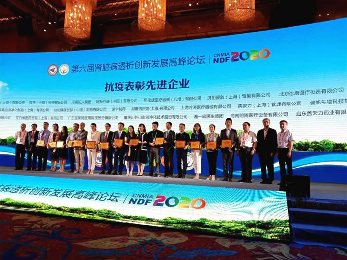 在會議上,梅長林教授代表非公立醫(yī)療機構協(xié)會腎臟病透析專業(yè)委員會,對支援武漢新冠肺炎抗疫期間馳援武漢的每一位醫(yī)護人員、抗疫先進企業(yè)進行了表彰。