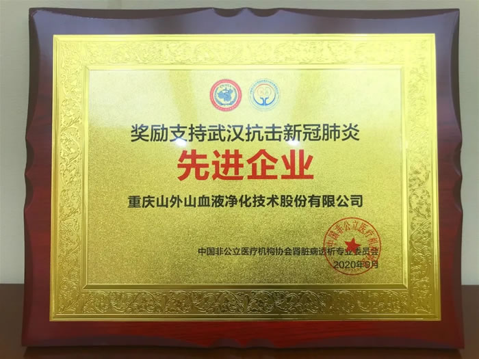 重慶山外山血液凈化技術股份有限公司由于在2020年抗擊新冠疫情中表現(xiàn)突出,獲得“支持武漢抗擊新冠肺炎先進企業(yè)”表彰