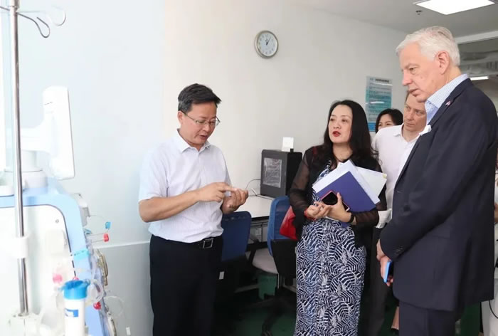 高光勇為鮑達民大使介紹SWS-5000型連續(xù)性血液凈化設備