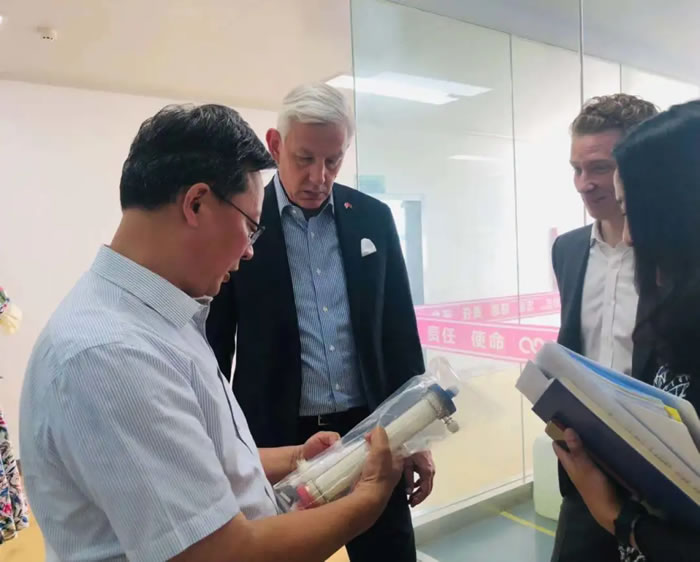 當了解到山外山公司新成功研發(fā)的SWS-5000型血液凈化設備(CRRT+人工肝)在新冠疫情中救治了大批新冠危重患者,鮑達民大使給予了特別的贊許。