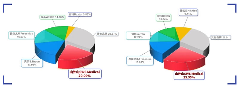 2024年第三季度,山外山血液透析機市場占有率20.09%,連續(xù)性血液凈化設備(CRRT)市場占有率23.55%,均位列行業(yè)第一▲(數據來源:今日標訊)