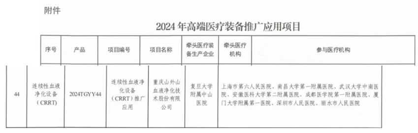 值得一提的是,本次大會在重慶市政府及中國醫(yī)學(xué)裝備協(xié)會的支持下,還特別舉辦了由國家工信部、國家衛(wèi)健委評選出的國家高端醫(yī)療裝備應(yīng)用推廣項目的啟動儀式。山外山牽頭復(fù)旦大學(xué)附屬中山醫(yī)院,及其他8家國內(nèi)知名醫(yī)療機構(gòu)專家攻關(guān)的連續(xù)性血液凈化設(shè)備(CRRT),在大會現(xiàn)場進行了成果轉(zhuǎn)化落地。