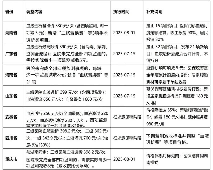 2025年7月,全國透析醫(yī)療服務(wù)價格改革進入密集落地期。